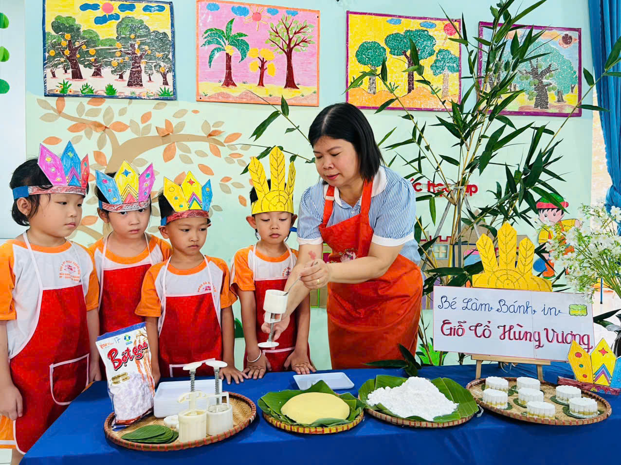 <h3 data-path-to-node="4"><b data-path-to-node="4" data-index-in-node="0"><strong>Giáo dục truyền thống từ những điều giản dị</strong></b></h3><p data-path-to-node="5">Hoạt động không chỉ đơn thuần là một tiết học kỹ năng mà còn là dịp để nhà trường lồng ghép giáo dục đạo lý “Uống nước nhớ nguồn”. Thông qua những câu chuyện kể của cô giáo về lịch sử các vị Vua Hùng, các bé lớp Lá 1 đã hiểu thêm về cội nguồn dân tộc và ý nghĩa của các loại bánh truyền thống trong văn hóa Việt Nam.</p><h3 data-path-to-node="6"><b data-path-to-node="6" data-index-in-node="0"><strong>Những &quot;nghệ nhân nhí&quot; trổ tài</strong></b></h3><p data-path-to-node="7">Dưới sự hướng dẫn tận tình của các cô giáo, không khí tại lớp học trở nên vô cùng hào hứng. Các bé được tự tay thực hiện các công đoạn để tạo nên một chiếc bánh hoàn chỉnh:</p><ul data-path-to-node="8"><li data-list-item-id="ec0de8a6eaafef91504cfe4f7da280007"><p data-path-to-node="8,0,0"><b data-path-to-node="8,0,0" data-index-in-node="0"><strong>Sự khéo léo:</strong></b> Những đôi tay nhỏ nhắn tỉ mẩn múc bột vào khuôn, cẩn thận nén chặt để tạo hình cho bánh.</p></li><li data-list-item-id="efef5782eab76ffec085f43ebe10486f7"><p data-path-to-node="8,1,0"><b data-path-to-node="8,1,0" data-index-in-node="0"><strong>Sự kiên trì:</strong></b> Để có được một chiếc bánh in đẹp mắt, các con đã học được cách nhẫn nại và tập trung trong từng thao tác.</p></li><li data-list-item-id="e08f91c2915787cf6354a823d47a481b9"><p data-path-to-node="8,2,0"><b data-path-to-node="8,2,0" data-index-in-node="0"><strong>Niềm hạnh phúc:</strong></b> Bạn nào cũng rạng rỡ nụ cười khi được tận mắt ngắm nhìn “thành phẩm” do chính tay mình làm ra.</p></li></ul><h3 data-path-to-node="9"><b data-path-to-node="9" data-index-in-node="0"><strong>Gìn giữ và tiếp nối giá trị văn hóa</strong></b></h3><p data-path-to-node="10">Những chiếc bánh in dù có thể chưa thật tròn trịa, hoàn hảo nhưng lại chứa đựng tình cảm chân thành và sự kết nối giữa các thế hệ. Hình ảnh các con nâng niu thành phẩm của mình chính là minh chứng cho việc truyền thống dân tộc luôn được gìn giữ và tiếp nối, bắt đầu từ những trải nghiệm thực tế ngay tại mái trường mầm non.</p><p data-path-to-node="11">Hoạt động trải nghiệm lần này đã để lại dấu ấn khó quên trong lòng các bé, giúp các con thêm yêu quê hương, đất nước và tự hào về truyền thống vẻ vang của dân tộc Việt Nam.</p><figure class="image"><img style="aspect-ratio:1248/1282;" src="https://bauham.dongnai.gov.vn/uploads/bauham/news/2026_04/18514909884078060221.jpg" width="1248" height="1282" /></figure><figure class="image"><img style="aspect-ratio:1276/956;" src="https://bauham.dongnai.gov.vn/uploads/bauham/news/2026_04/424760031089990621311.jpg" width="1276" height="956" /></figure><figure class="image"><img style="aspect-ratio:1276/934;" src="https://bauham.dongnai.gov.vn/uploads/bauham/news/2026_04/424760031089990621312.jpg" width="1276" height="934" /></figure><figure class="image"><img style="aspect-ratio:1086/1280;" src="https://bauham.dongnai.gov.vn/uploads/bauham/news/2026_04/148674255859799658917.jpg" width="1086" height="1280" /></figure><figure class="image"><img style="aspect-ratio:1276/956;" src="https://bauham.dongnai.gov.vn/uploads/bauham/news/2026_04/93692879746781616913.jpg" width="1276" height="956" /></figure><figure class="image"><img style="aspect-ratio:1276/956;" src="https://bauham.dongnai.gov.vn/uploads/bauham/news/2026_04/93692879746781616914.jpg" width="1276" height="956" /></figure><figure class="image"><img src="https://bauham.dongnai.gov.vn/uploads/bauham/news/2026_04/224913552419527411216.jpg" /></figure><figure class="image"><img style="aspect-ratio:1276/956;" src="https://bauham.dongnai.gov.vn/uploads/bauham/news/2026_04/22767487471033278136.jpg" width="1276" height="956" /></figure><figure class="image"><img style="aspect-ratio:956/1276;" src="https://bauham.dongnai.gov.vn/uploads/bauham/news/2026_04/43196491733914085462.jpg" width="956" height="1276" /></figure><figure class="image"><img style="aspect-ratio:1276/900;" src="https://bauham.dongnai.gov.vn/uploads/bauham/news/2026_04/43196491733914085463.jpg" width="1276" height="900" /></figure><figure class="image"><img style="aspect-ratio:1274/706;" src="https://bauham.dongnai.gov.vn/uploads/bauham/news/2026_04/43196491733914085464.jpg" width="1274" height="706" /></figure><figure class="image"><img src="https://bauham.dongnai.gov.vn/uploads/bauham/news/2026_04/358026360306357695818.jpg" /></figure>